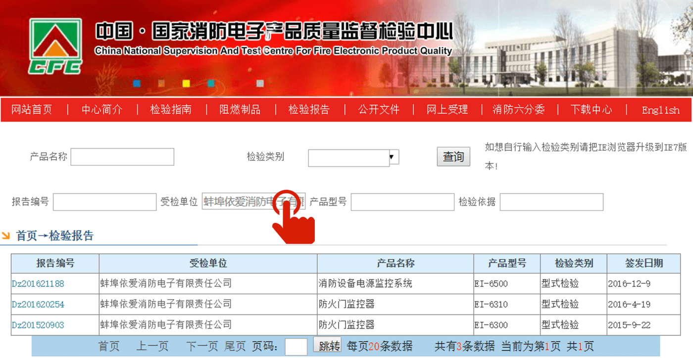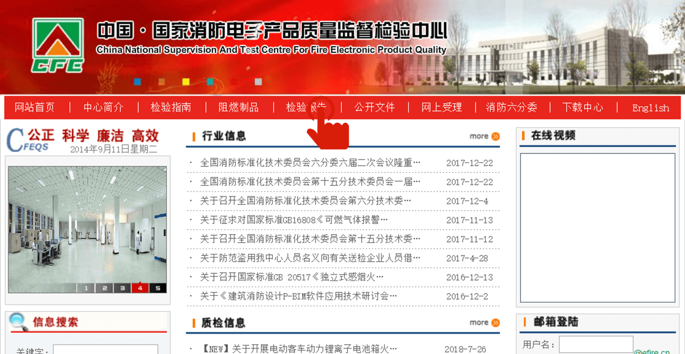 Login to China* National Fire Electronic Product Quality Supervision and Inspection Center (www.efire.cn)