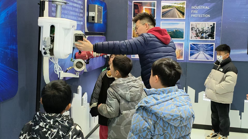 活動當日,依愛消防技術支持部負責人王龍君負責組織接待。在接待人員的引導下居民和兒童步入消防設備展示區(qū)。在這里,各式各樣先進的消防產品整齊陳列,水炮產品、智慧消防、火災報警系統(tǒng)等一一呈現(xiàn)在大家眼前。綜合管理部負責人張奇詳細為大家講解了消防公司的發(fā)展歷程,產品組成與作用。在模擬火災逃生體驗區(qū),居民和兒童在工作人員的悉心指導下,嚴格按照正確的逃生姿勢和既定路線有序撤離,成功完成了一次逼真的模擬火災逃生演練。通過此次演練,大家不僅熟悉了火災發(fā)生時的應對流程,更在實踐中鍛煉了應急反應能力和團隊協(xié)作能力。
