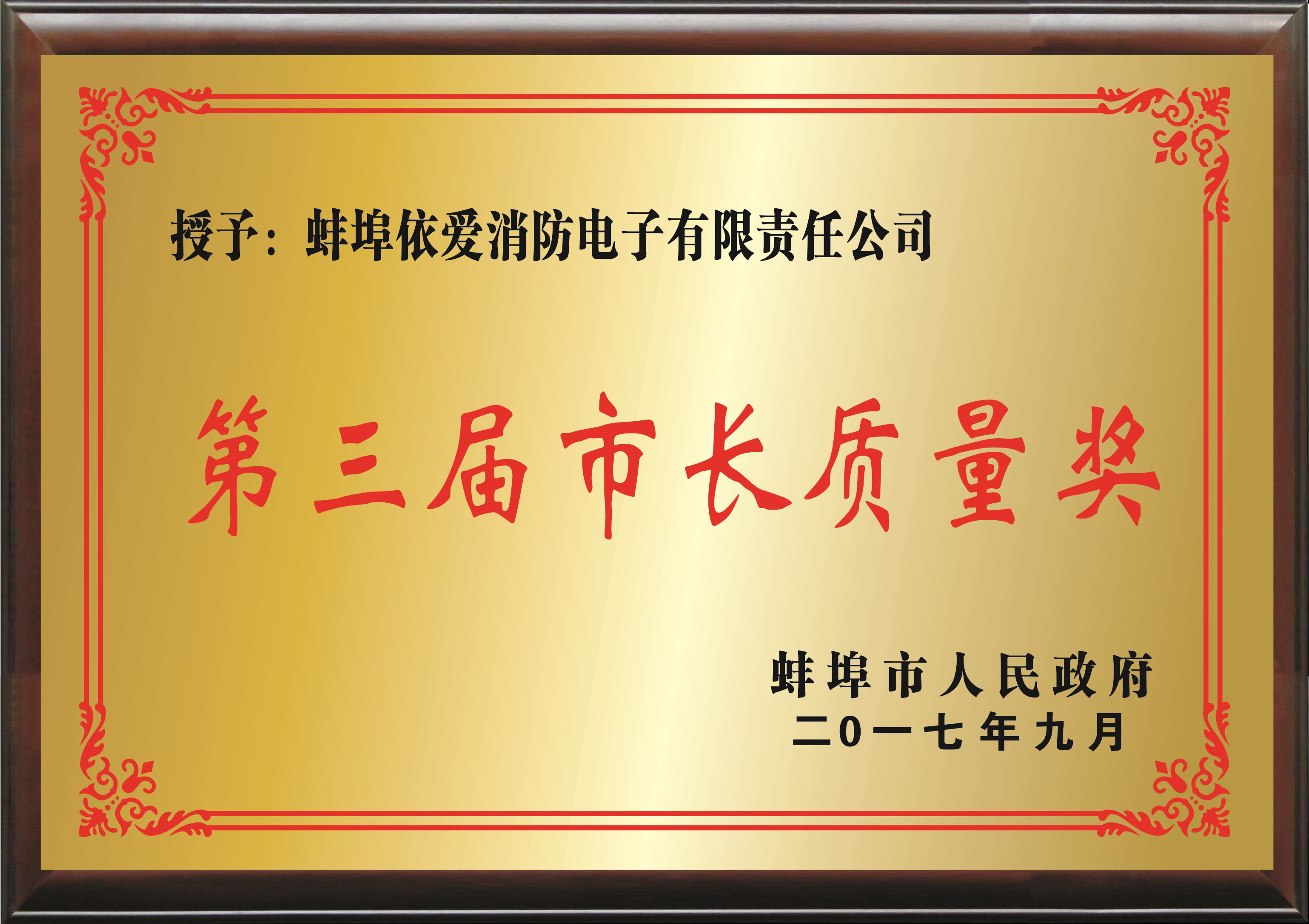 依愛消防榮獲蚌埠市長質(zhì)量獎(jiǎng)